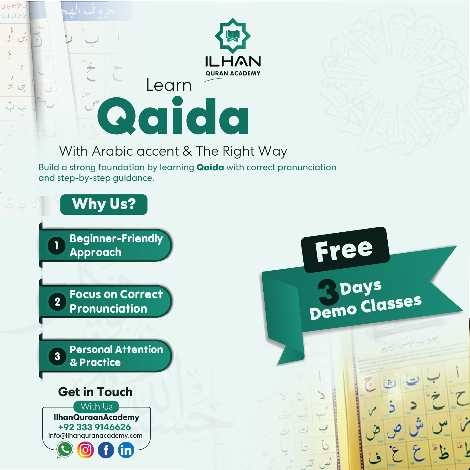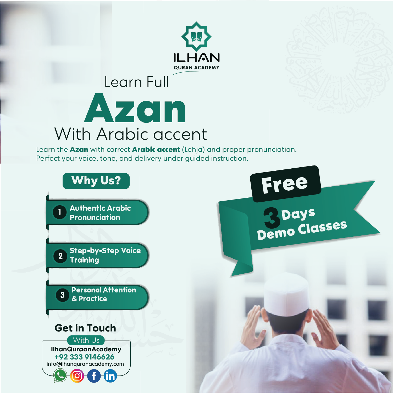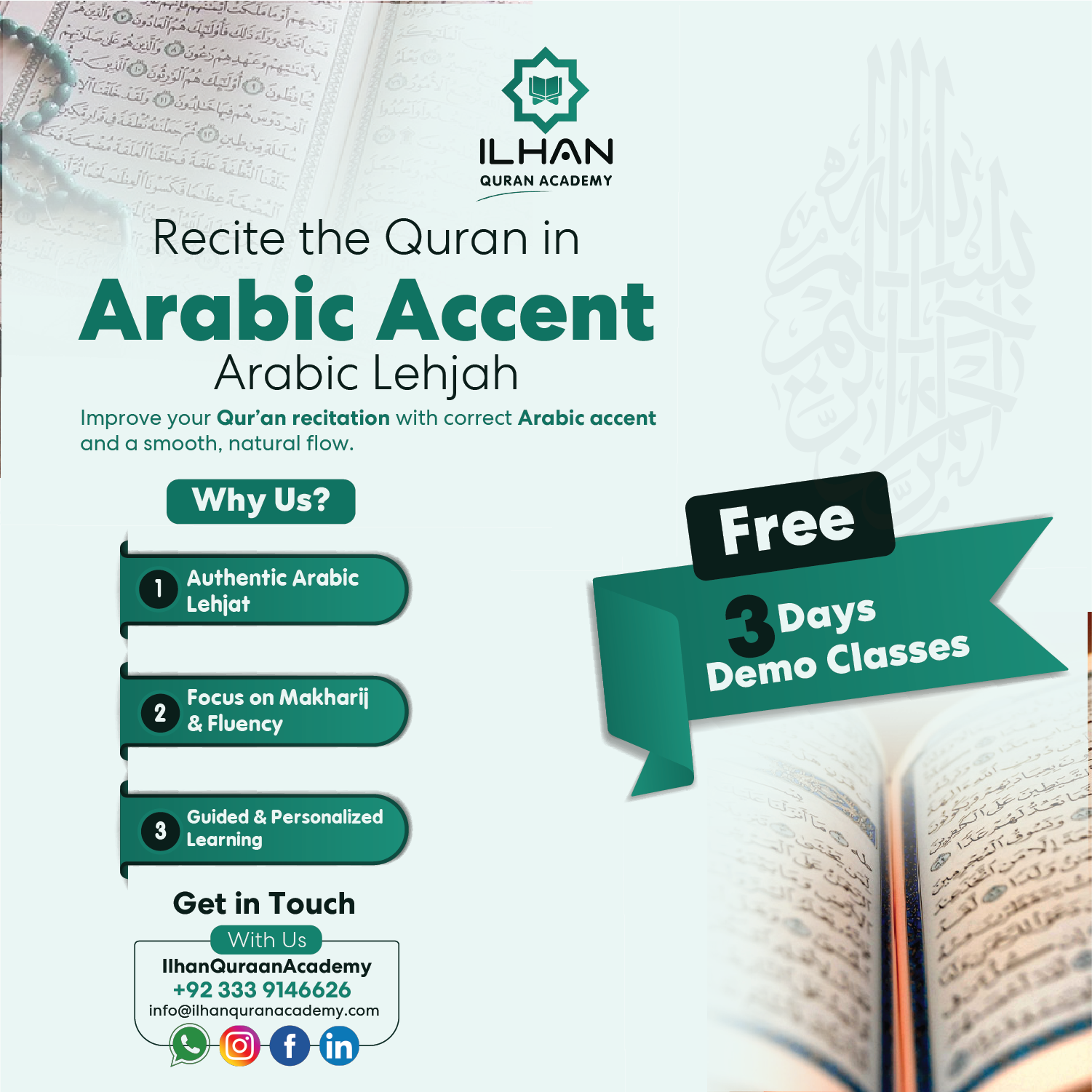 Welcome to Ilhan Quran Academy, your trusted source for comprehensive Quranic education and a dedicated platform for spiritual growth. Our academy was founded with a noble mission: to provide accessible, high-quality Quranic learning to students worldwide, regardless of their location or age. We specialize in teaching Tajweed and diverse Arabic accents (Lehjat), fostering a deep connection with the Holy Quran through proper recitation, accurate pronunciation, and linguistic mastery.